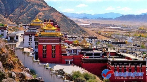 Vẻ đẹp của Tashilunpo dưới ánh nắng chói chang của Tây Tạng với màu tường đỏ và mái vàng của tòa nhà cao nhất tu viện sẽ khiến du khách nhớ mãi.