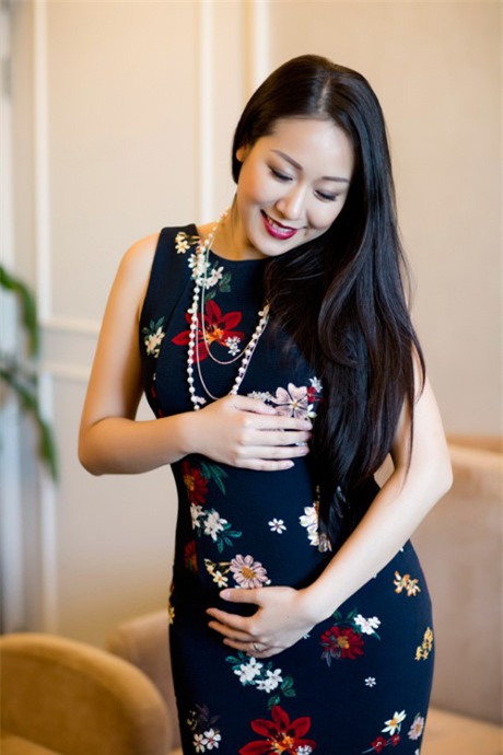 Hoa hậu châu Á tại Mỹ 2005 hạnh phúc rạng ngời khi mang thai đứa con thứ 3. Cô ngày càng đằm thắm và vẫn giữ được hình ảnh đẹp.