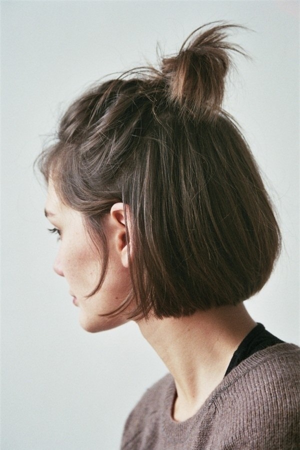 Kiểu tóc búi củ tỏi nửa đầu có thể áp dụng cho cả tóc dài, tóc ngắn nhé!