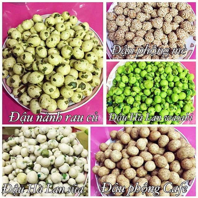 nhiều món ăn nhâm nhi mới như đậu Hà Lan sữa, đậu Hà Lan tẩm wasabi, đậu
