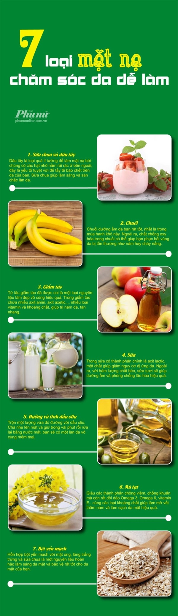 7 loại mặt nạ dưỡng da dễ làm tại nhà