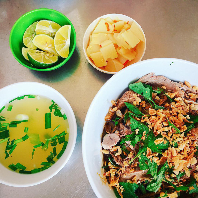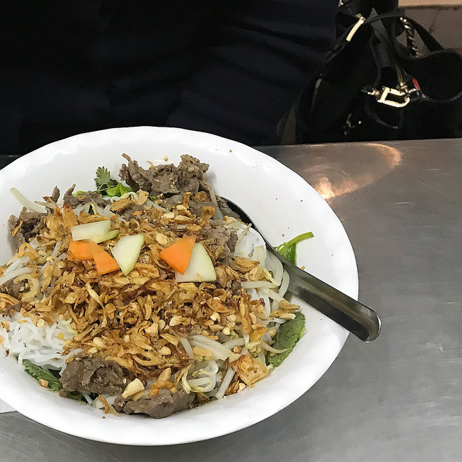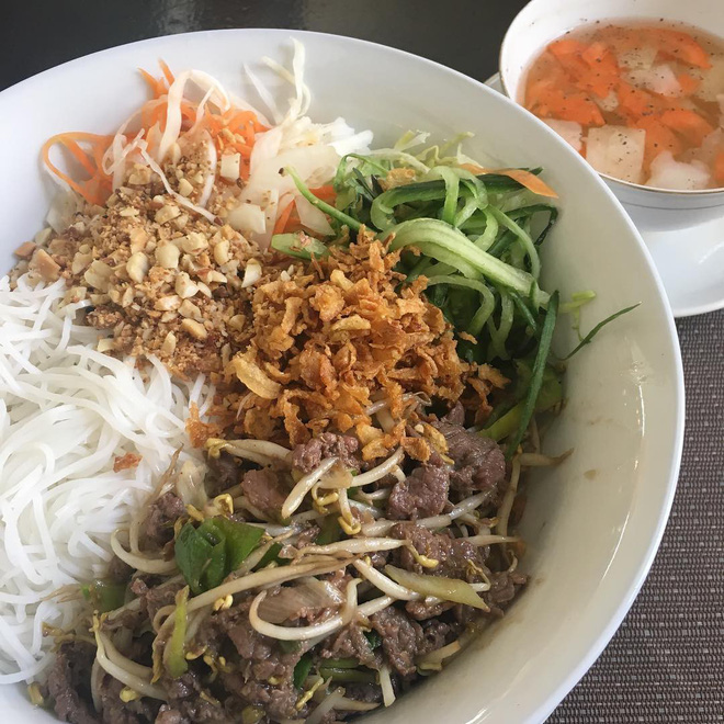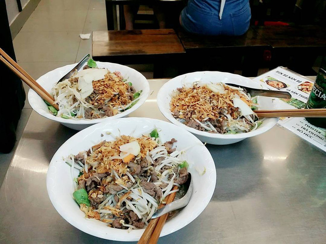 Như đã nói, phở trộn thường thiên về phở gà, còn nếu bạn là fan của bò, thì món trộn dành cho bạn chắc chắn là bún bò Nam bộ. Không cần trần như phở, để làm bún bò trộn, bạn chỉ cần bún rối đơn thuần là đủ. Bát bún trắng sau đó sẽ được thêm các loại rau sống, thịt bò xào, lạc, hành phi và chan nước mắm chua ngọt. Tất nhiên các quán cũng thường chuẩn bị thêm dưa góp chua ngọt để món ăn thêm đưa đẩy và bớt ngán.