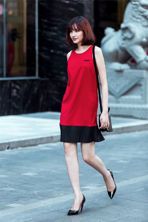 Đầm đỏ không tay đem lại sự hứng khởi.