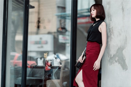 Chi tiết xẻ trước giúp thiết kế váy bút chì bớt đơn điệu nhưng vẫn giữ sự kín đáo.