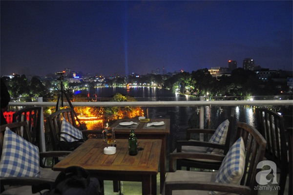 Nằm sát bờ Hồ Hoàn Kiếm, đây là địa điểm lí tưởng để có thể ngắm được cầu Thê Húc, tìm kiếm những làn gió trong lành từ phía hồ đưa lại và nhìn xuống mặt nước lăn tăn. Bạn có thể ngồi ngoài trời, ngắm nhìn những tán cây xanh mát từ đằng xa.