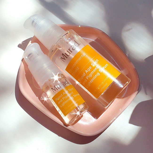 Bác sĩ Sejal Shah tại New York gọi hydroquinone là tiêu chuẩn vàng cho những thành phần làm sáng da; và hydroquinone có trong lọ serum của nhà Murad. Song song với thành phần này là glycolic acid giúp loại bỏ tế bào chết để hydroquinone có thể thẩm thấu sâu hơn, giúp làm sáng da từ bên trong.