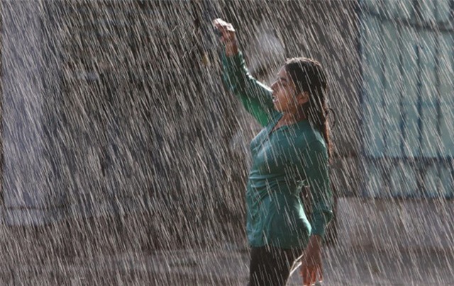 Một cô gái đứng giữa đài phun nước ở công viên tại Hyderabad, thủ phủ
