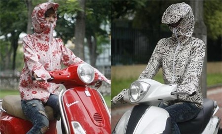 các tia UV bằng mũ, áo chống nắng, khẩu trang, kính râm, ô...