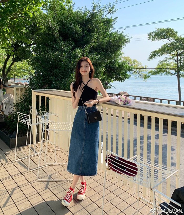 Nếu cho rằng chiếc áo ba lỗ trong tủ đồ là item ''khó tính'' thì bạn đã sai rồi đó, vì chúng cũng có thể trở thành ''bạn thân'' với chân váy denim dáng dài. Kiểu phối này đang rất thịnh hành vì mang nét đẹp độc đáo của xu hướng Y2K. Nếu là một cô nàng sành điệu và không ngại thử nghiệm những phong cách mới thì bạn nên áp dụng ngay cách phối này.