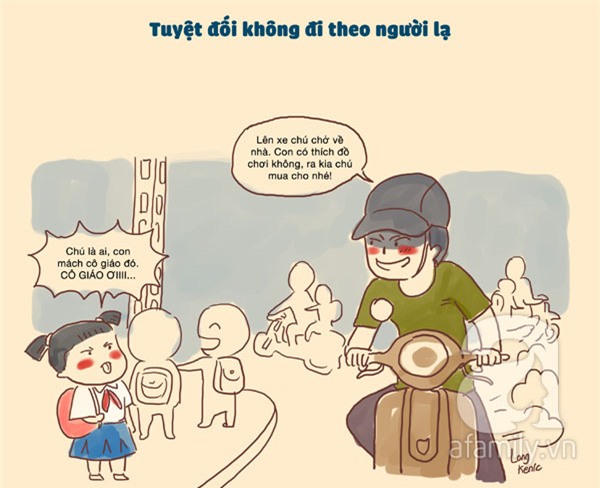 Dạy trẻ không được nghe theo những lời dụ dỗ của bất cứ người lạ nào và cũng không được đi theo họ, dù ở bất cứ nơi đâu. |