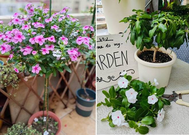Dừa cạn - loại cây nên cắt tỉa vào mùa thu để hoa tươi tốt. (Ảnh: Toutitao)