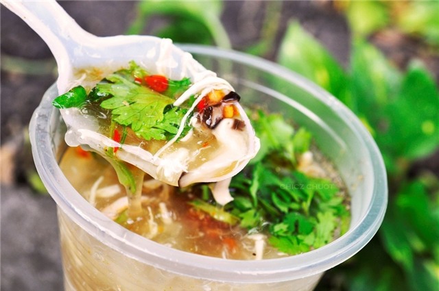 Súp cua là món ăn nhẹ quen thuộc vào mỗi buổi chiều của người dân Sài thành. Tô súp sóng sánh với thịt cua, ít thịt gà xé nhỏ, trứng cút, nấm thái mỏng kèm theo rau ngò, tiêu và ớt làm dậy lên mùi thơm quyến rũ và vị ngọt tự nhiên, đặc biệt là không tạo cảm giác ngán. Súp cua ở Sài Gòn có thể ăn trong bát nhỏ hoặc múc vào ly cho những người bận rộn.