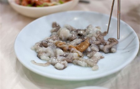 của Hàn Quốc. Khi vẫn còn sống, bạch tuộc con bị cắt thành nhiều miếng