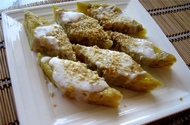 Bên cạnh các phương thức nướng, chiên, sấy, ngào đường thì chuối hấp cũng tạo nên điểm cộng của riêng mình. Để làm nên món ăn hấp dẫn này, bạn cần cho chuối thái mỏng vào hòa cùng bột gạo, bột năng, muối, đường, vani và một ít nước rồi mang đi hấp chín cho đến khi bột khô, dùng đũa xăm không thấy dính. Đun hỗn hợp nước dừa, bột năng sền sệt rồi phủ lên mặt bánh, rắc ít đậu phộng cho thêm béo bùi và đẹp mắt.