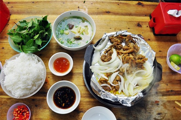 bạc, đổ chút dầu với nhiều hành tây vào, bật bếp cho lửa liu riu. Thịt ngan nướng mềm, ngấm gia vị lại nóng hổi nên rất được ưa chuộng trong mùa lạnh. Giá trung bình khoảng 160 ngàn đồng/ phần.