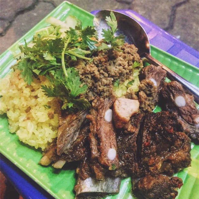 Bát xôi ở đây có phần hơi bé, một bát xôi chỉ tầm lưng lưng nhưng không quá ít mà vừa để đủ no,. Ngoài món sườn rang vừa miệng, thơm lừng, ở đây còn có có đủ các loại chả, thịt, xúc xích như hiều hàng xôi khác.