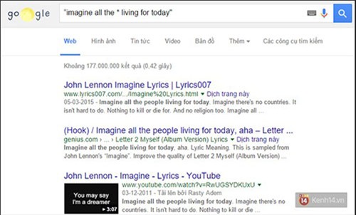 vị trí của dấu *. Hãy thử tưởng tượng bạn đang tìm kiếm lời một bài hát