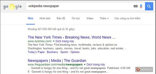 4. Dùng dấu trừ (-) để loại bỏ kết quả tìm kiếm từ một trang nhất định nào đó