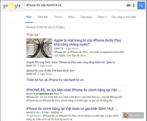 sử dụng cú pháp iPhone 6s site:kenh14.vn.