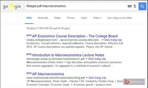 của mình. Giả sử khi bạn sử dụng cú pháp "filetype:pdf macroeconomics",