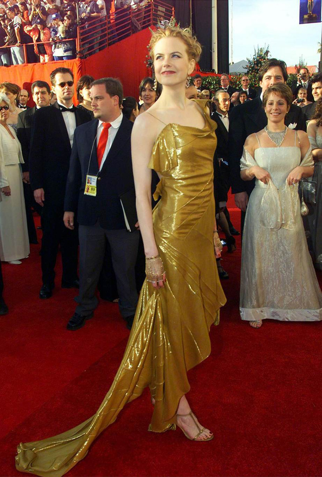 Với nước da trắng ngần, vóc dáng thon gọn và nhan sắc thuộc hàng biểu tượng của Hollywood, Nicole Kidman thậm chí còn giúp chiếc đầm trở nên lộng lẫy, sang chảnh hơn bội phần. Và sự kết hợp cùng chiếc vương miện, đôi găng tay cùng giày cao gót vàng ánh kim đã khiến sự xuất hiện của Nicole Kidman tại thảm đỏ Oscar năm ấy không thể hoàn hảo hơn.