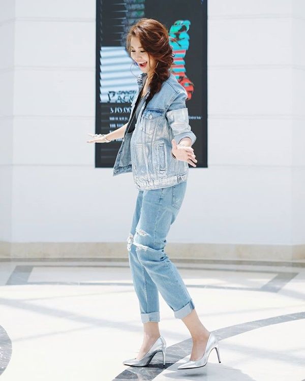 Thanh Hằng thể hiện sự trẻ trung, năng động của mình khi người đẹp chọn set đồ denim on denim