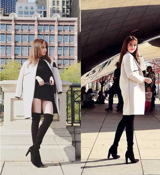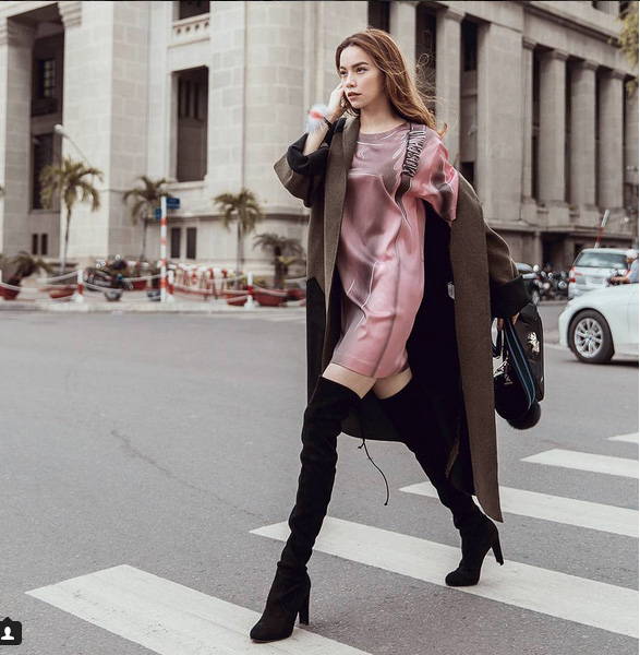 Hà Hồ thể hiện phong cách đẳng cấp của mình với chiếc áo khoác dáng dài mix cùng váy suông và boots cao