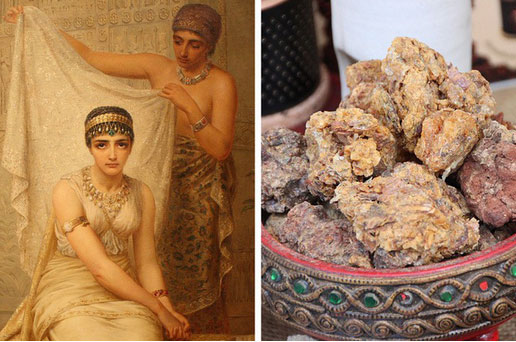 Rất lâu trước, người đẹp Esther trước khi kết hôn với vua nước Ba Tư đã dùng dầu Myrrh để dưỡng da trong khoảng một năm. Loại tinh dầu này có tác dụng làm săn chắc da, chống lão hóa, chữa lành vết thương, chống lại mụn trứng cá.