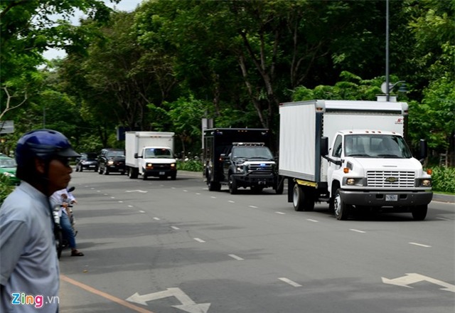 Đoàn xe chuyên dụng phục vụ công tác bảo vệ Tổng thống Mỹ trong mỗi chuyến công du. Ảnh: Lê Quân |