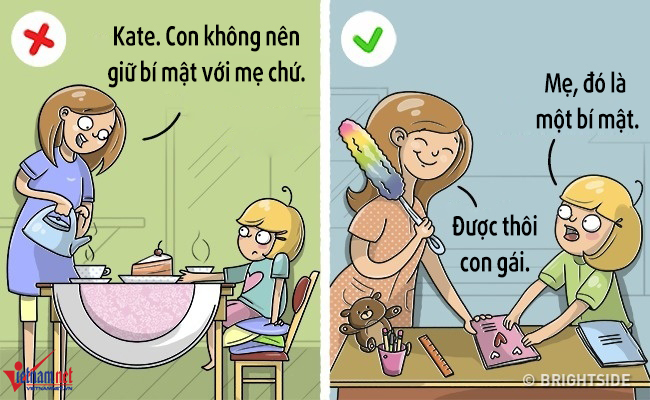 Càng lớn, con càng cần có sự riêng tư. Cha mẹ nên biết chuyện gì đang diễn ra trong cuộc sống của con nhưng đừng xâm phạm. Niềm tin của con là vô giá. Cha mẹ tốt nhất không nên mạo hiểm đánh đổi niềm tin này khi đọc trộm nhật ký hoặc ép con tiết lộ những bí mật.