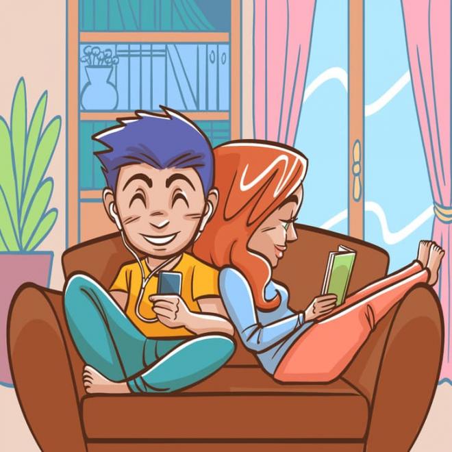 Rất nhiều lần, bạn thấy mình và người ấy lặng lẽ làm những việc riêng dù ngồi trong cùng một phòng. Trong những khoảnh khắc im lặng, hãy học cách trân trọng sự hiện diện của nhau từ đó là nền tảng xây dựng nên sự thoải mái trong một mối quan hệ.