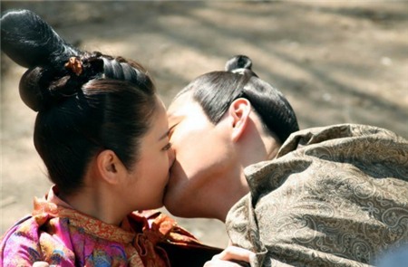 Vũ Văn Ung (Trần Hiểu Đông) cưỡng hôn Tuyết Vũ (Lâm Y Thần) trongbộ phim truyền hình cổ trang Lan Lăng Vương.
