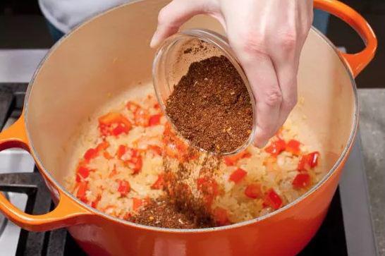 Để tăng cường hương vị của gia vị xay và thảo mộc khô, hãy xào chúng trong một hoặc hai phút trong một ít bơ hoặc dầu trước khi thêm các chất lỏng vào chảo. Nếu bạn xào các món rau chứa nước như hành tây, thêm các loại gia vị vào trong chảo khi các loại rau gần như nấu chín.