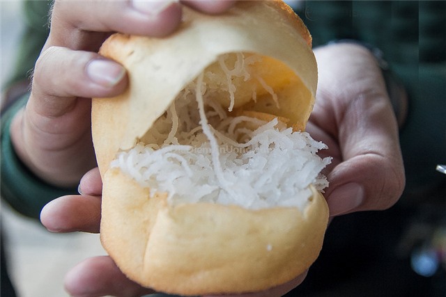 Gòn. Bánh được bán trong những xe đẩy nhỏ, có người vẫn giữ cách làm thô