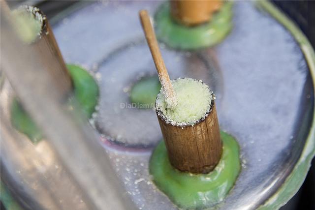 xanh cũng như mùi thơm. Khi chế biến, người làm bánh đặt khuôn trên nắp