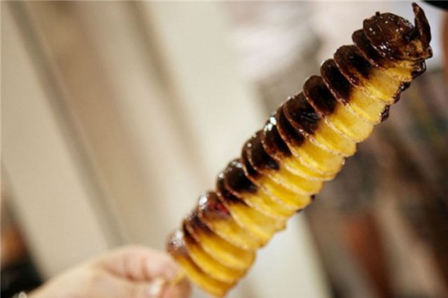 Cách làm món này khá đơn giản, khoai tây gọt vỏ được xiên vào que theo hình xoắn ốc, sau đó chiên vàng giòn tan và cuối cùng chấm sốt socola. Đó là sự kết hợp cân bằng giữa ngọt và mặn, màu vàng của khoai và nâu của socola. Món ăn này được xuất hiện khá phổ biến tại Minnesota, Mỹ và lan rộng ra nhiều thành phố khác trên thế giới.