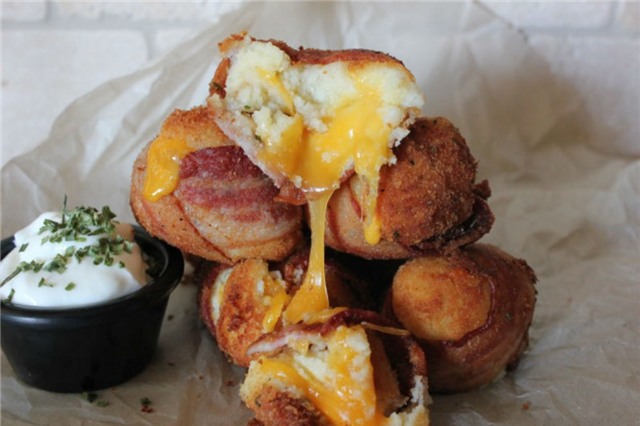 Món ăn có cái tên rất dài: khoai tây nghiền trộn thịt xông khói và pho mát. Đây thực tế là một món ăm còn khá mới mẻ đối với nhiều người và có thể đưa bạn đi từ ngỡ ngàng này tới ngạc nhiên khác khi thưởng thức. Đầu tiên là ngạc nhiên khi thấy thịt xông khói trong viên khoai tây nghiền chiên. Sau đó bạn sẽ thích thú khi thấy phần phomai tan chảy dần trong miệng.