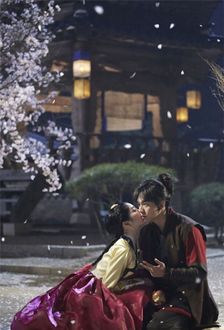 | Trong ánh trăng chiếu rọi và bên hàng hoa anh đào nở rực rỡ, Yeo Wool (Suzy) đã cứu Kang Chi (Lee Seung Gi) khỏi đám sát thủ. Sau khi bị thương, chàng đã ngất đi trên vai nàng. |