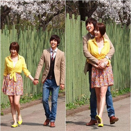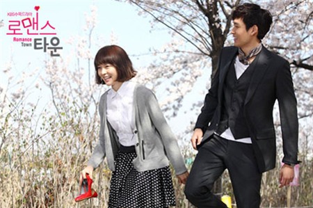 | Phút giây lãng mạn của Sung Yu Ri và Jung Gyu Woon dưới hàng cây anh đào trong phim Romance town. |