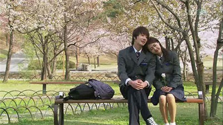 | Nụ hôn đầu tiên của Jang Dong Gun và Kim Ha Neul trong A gentleman's dignity là dưới hàng cây anh đào nở rực rỡ. |