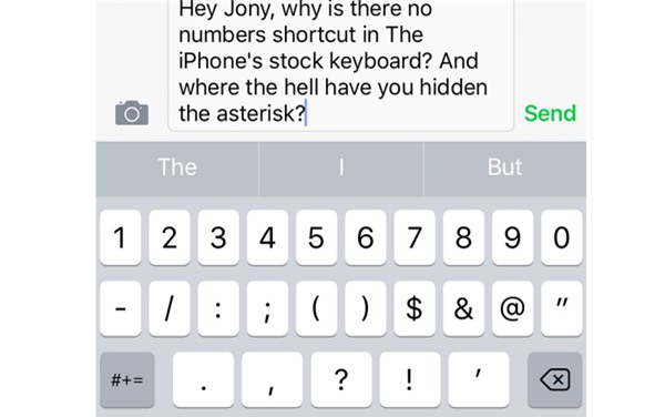 Apple có thể cho phép iOS hỗ trợ các bàn phím của bên thứ ba, nhưng về cơ bản, chúng không được tối ưu hóa bằng bàn phím Apple gốc. Chỉ có điều, Apple rất ngoan cố khi giữ mãi thiết kế bàn phím suốt từ thời iPhone đời đầu đến giờ. Vẫn không có hàng riêng cho các chữ số, cũng như phím tắt dẫn đến các phím số - do đó, gõ mật khẩu là một việc mệt mỏi. Đấy là chưa kể bạn còn không thể tìm thấy ký tự * nữa.