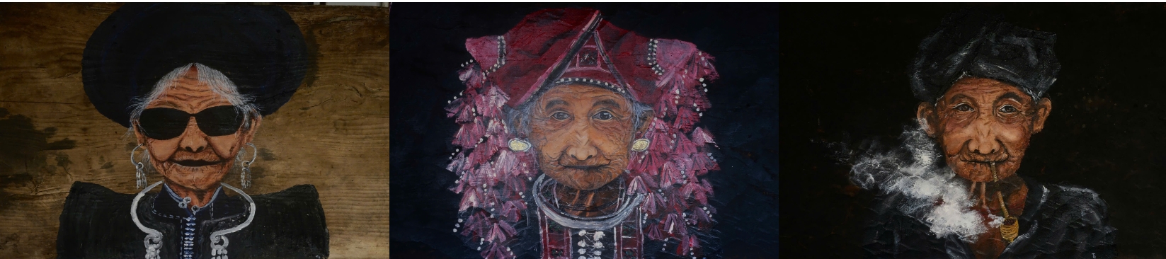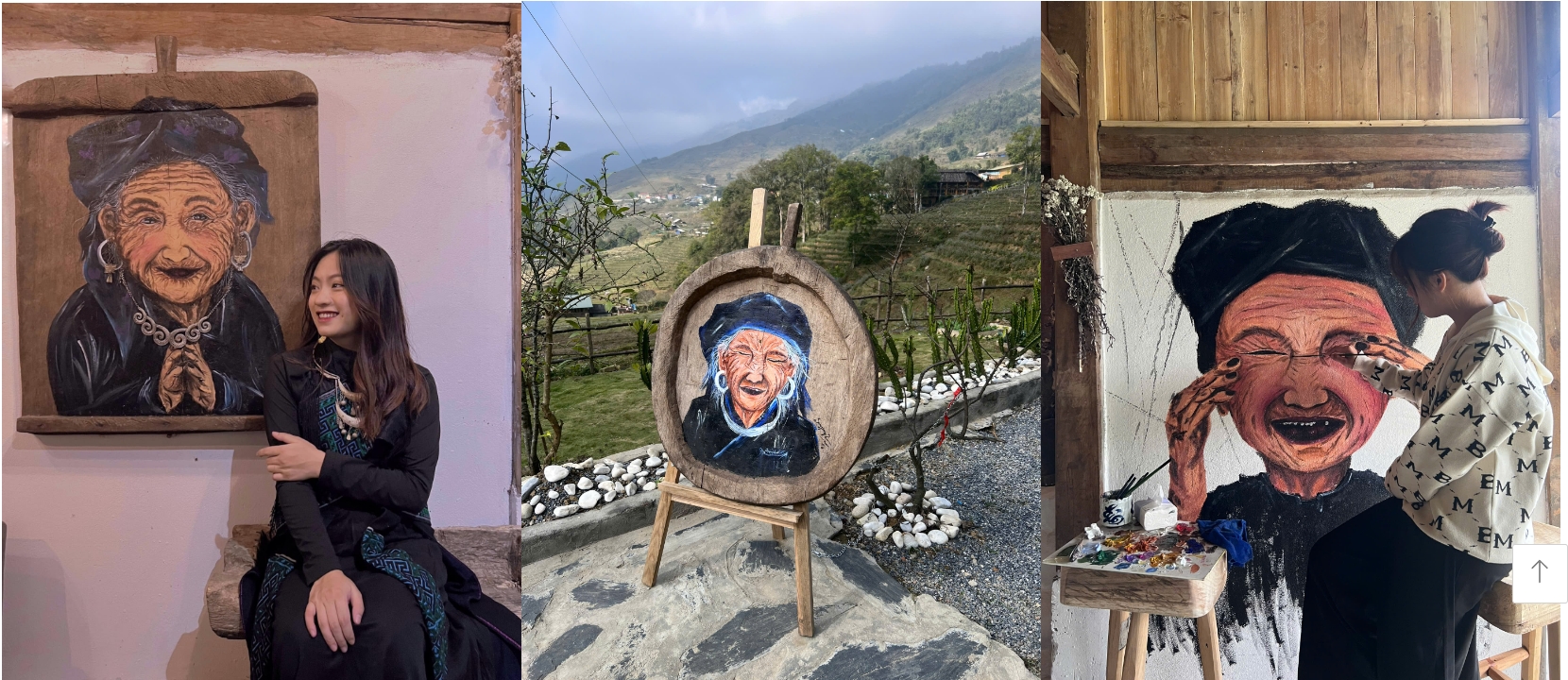 Thùy Giang vẽ tranh người cao tuổi ở Sa Pa trên chất liệu gỗ cũ, mong muốn quảng bá du lịch quê nhà tới du khách trong và ngoài nước