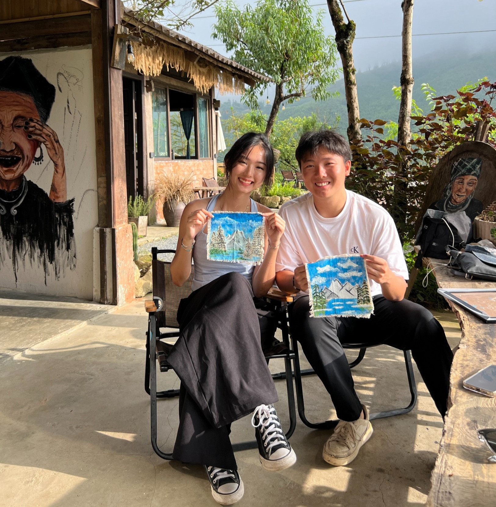 Joei Lim (26 tuổi, đến từ Singapore) cùng bạn gái ghé thăm Sa Pa hồi tháng 8/2024. Họ đã có khoảng thời gian ngắn ngủi nhưng ý nghĩa khi được tham gia vẽ tranh cùng Thùy Giang tại ngôi nhà nhỏ giữa những thửa ruộng bậc thang.
