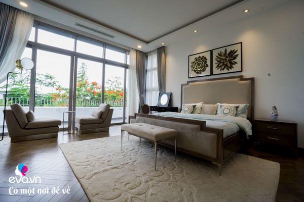 Giường ngủ chị chọn hầu hết tone màu trắng, pha chút ánh kim vừa mang lại sự sang trọng, cao cấp. Bên cạnh đó, chiếc giường màu nâu trầm hay màu kem sang trọng cũng là điểm nhấn cho căn phòng. Đặc biệt, khi chọn một không gian cổ điển, tĩnh lặng để sống chị không quên bài trí cho gia đình một phòng thư viện với đầy đủ các đầu sách phù hợp với lứa tuổi của các thành viên trong nhà.