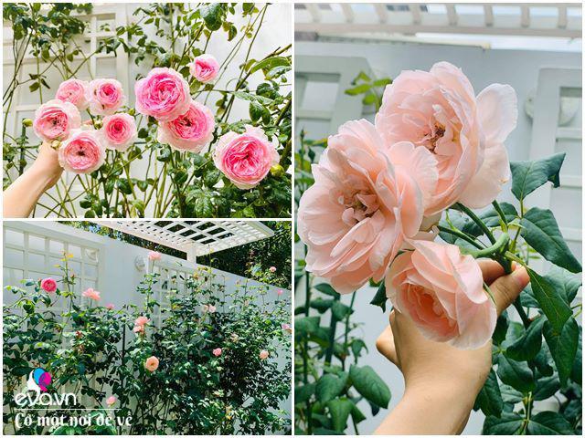 Chị kể: “Khu vườn mình tối đa mảng xanh của cỏ và trồng các cây ăn trái như cây nhãn, cây khế, cây sơ ri, cây siro. Và một góc mình trồng các loại rau như chanh, sả, ớt và cây tía tô, bạc hà... vừa cung cấp rau thơm cho nhà vừa có tác dụng đuổi muỗi. Khi tới đợt quả mình hay tặng làm quà cho người thân, bạn bè mà mình hay gọi trêu là cây nhà lá vườn”.