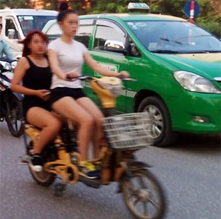 Quần siêu ngắn, áo hở bụng cưỡi xe đạp điện đang là hình ảnh gây ác cảm cho người tham gia giao thông.