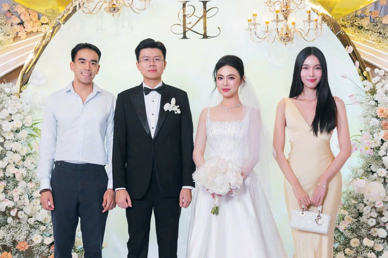 Xuất hiện ở đám cưới, Phương Anh và ông xã tiến sĩ diện trang phục sang trọng. Trong khi nàng hậu lựa chọn đầm lụa màu vàng chanh khoe trọn vóc dáng nuột nà thì chồng doanh nhân diện áo sơ mi, quần âu chỉn chu. Cặp đôi toát ra đầy mùi tri thức khiến nhiều người ngưỡng mộ.