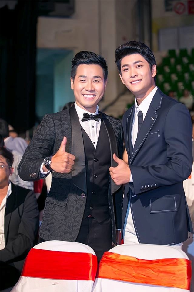 | Nam ca sĩ Hà Anh và bạn gái - Dương Hoàng Yến trên thảm đỏ Lễ trao giải Ấn tượng VTV 2015. |
