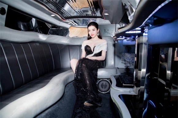 Có mặt tại một sự kiện được diễn ra ở Quận 7, TP.HCM, Á hậu Huyền My khiến mọi người "choáng ngợp" khi bước ra từ chiếc siêu xe limousine có giá khoảng 30 tỷ đồng. Huyền My mặc bộ váy đuôi cá xuyên thấu ngồi tạo dáng trong chiếc xe sang trọng.