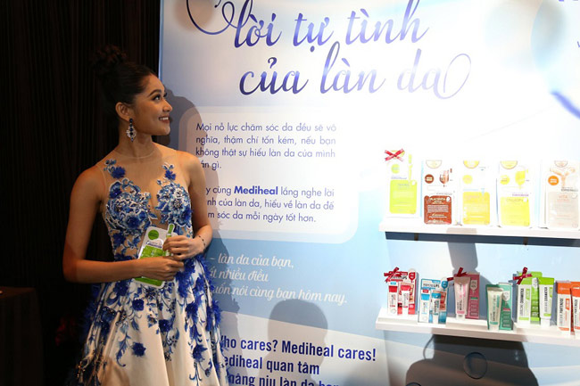 Huyền My và Thùy Dung cùng nhau chia sẻ kinh nghiệm sử dụng sản phẩm Mediheal, cũng như công tác chuẩn bị của cả hai cho những cuộc thi sắp tới. Được biết, sự kiện Mediheal chính thức phân phối độc quyền tại Việt Nam đã diễn ra với chủ đề Lời tự tình của làn da.